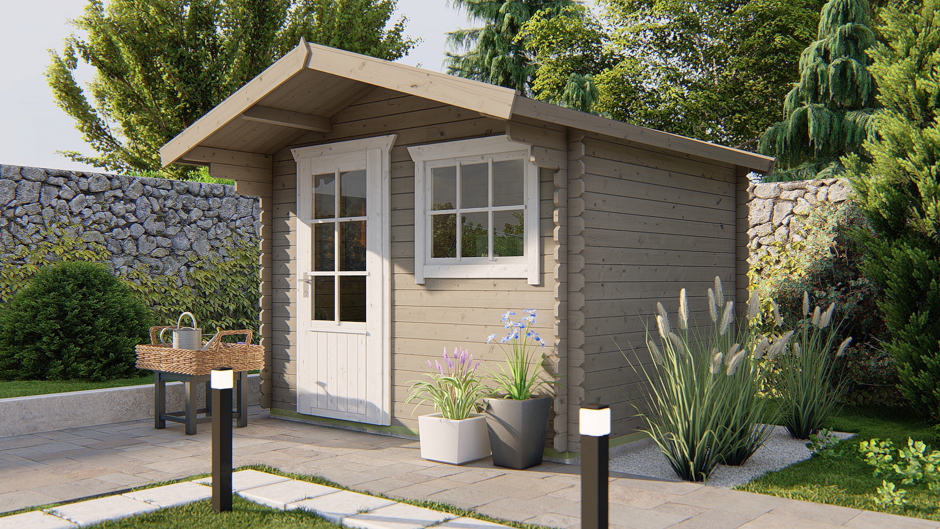 Blokhut – Tuinhuis Björn | 28 mm | vuren grijs geïmpregneerd