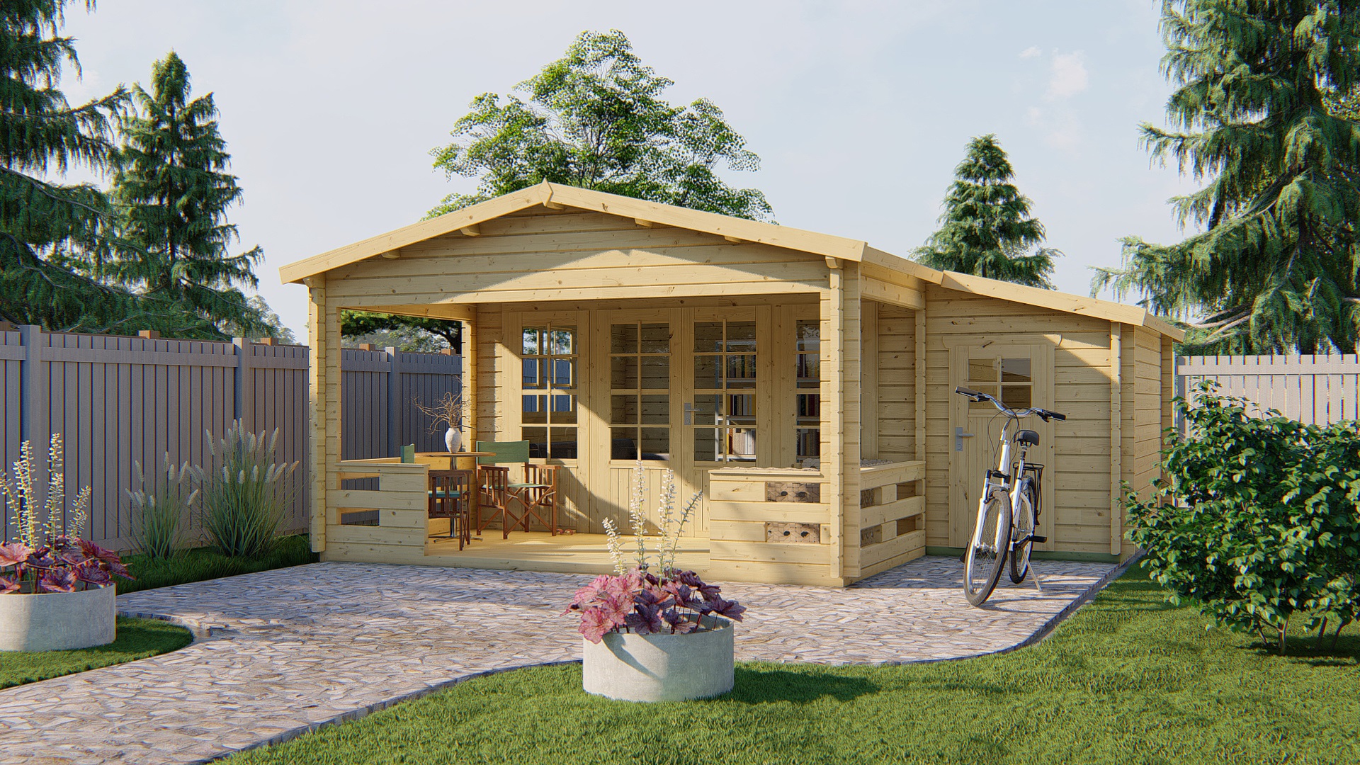 Blokhut – Tuinhuis Coventry | 58 mm | vuren groen geïmpregneerd